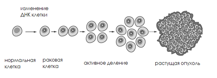 3. Мутировавшую клетку уже не изменить. Клетка, вышедшая раковой, уже не подлежит исправлению. Вылечить ее теперь нельзя, можно только убить. Это делают с помощью химической терапии, но только на начальных стадиях, позже это уже бессмысленно, т. к. воздействие на опухоль достаточно большого размера окажется для пациента уже смертельным.