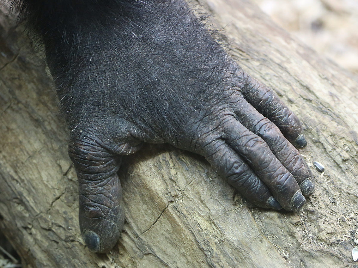 А кисть шимпанзе — для того, чтобы поднимать собственный вес и... ломать. Шансов вырваться из стального хвата взрослого шимпанзе очень мало. Это всё равно что пытаться разжать гидравлический пресс.