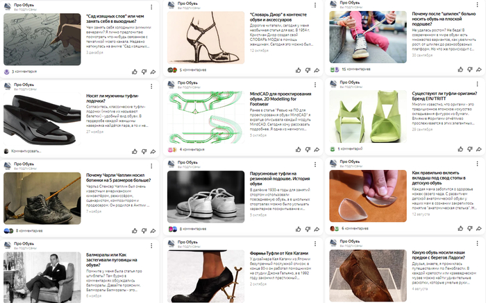 Дзен-канал "Про Обувь". Там кроме самой обуви экскурсы в историю, интересные факты, наблюдения за технологиями, фотки производства и видео работы обувных машин. Пишет точным и понятным языком со ссылками на ГОСТы.