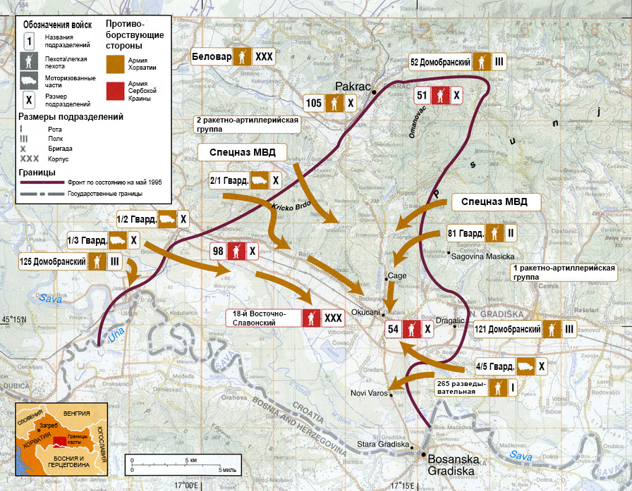 Схема операции «Молния» — хорватского наступления на Западную Славонию.