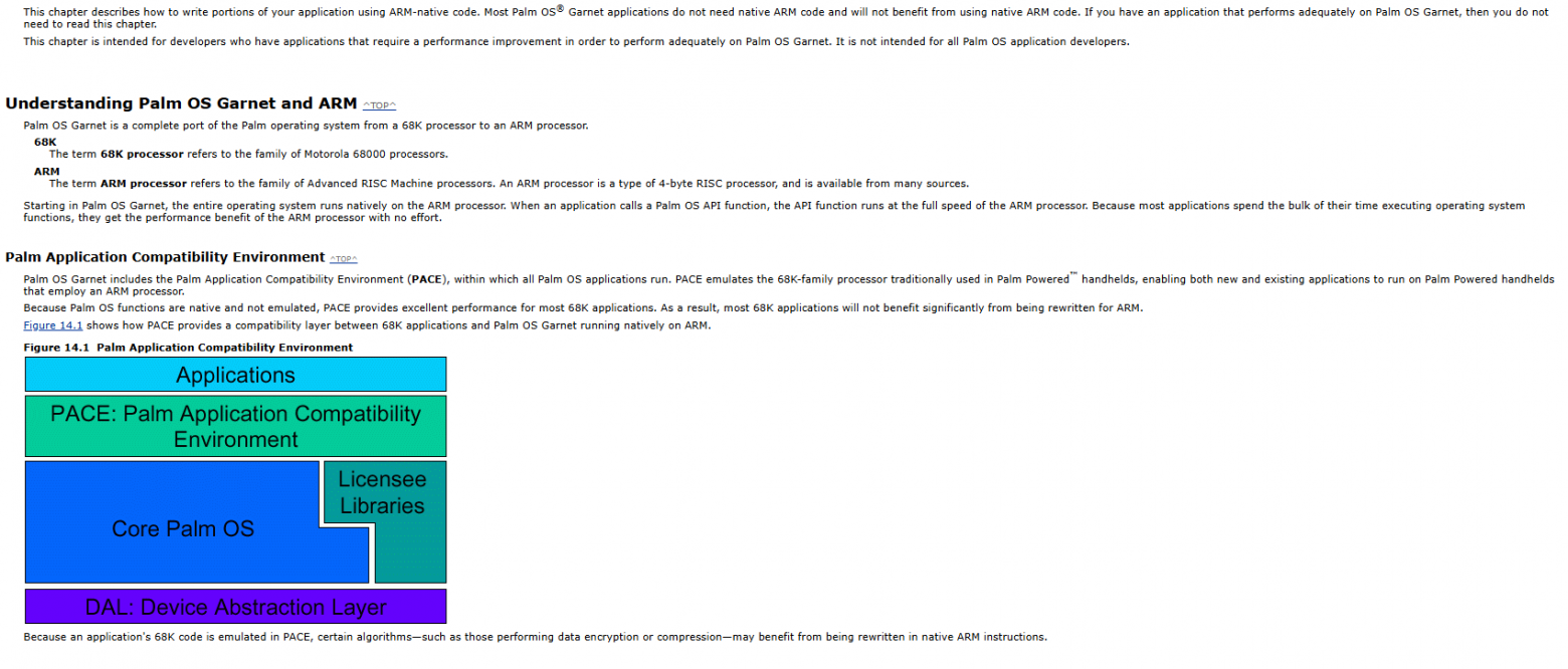 Однако уже в 2002 году, сомнительные перспективы низкочастотных процессоров Dragonball и устаревшей архитектуры m68k были очевидны для Palm и они решились на рискованный шаг: в новой линейке Tungsten они решили перейти на процессоры TI OMAP с архитектурой ARM. Но как тогда быть с уже существующим софтом, который распространялся на дисках? Правильно — встроить эмулятор m68k (PACE) в новую систему PalmOS 5.0 «Garnet»!