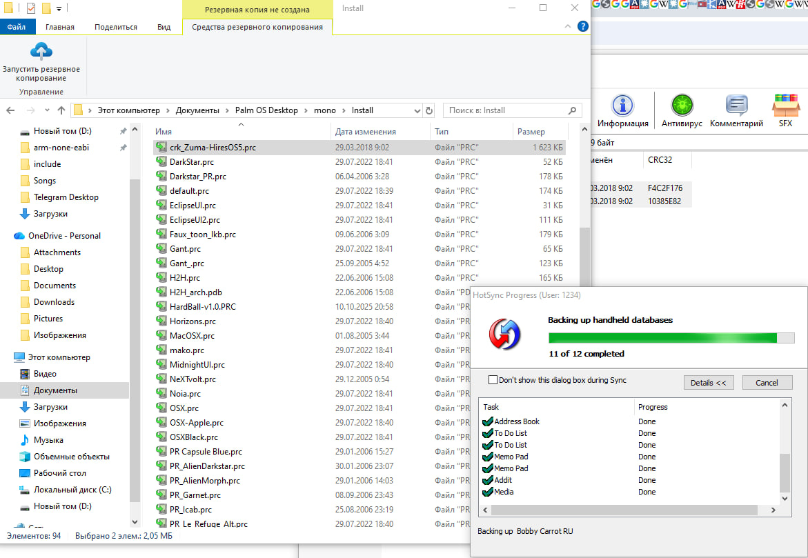 Интересно также то, что у PalmOS по сути и не было концепции файловой системы. Приложения хранили свои данные в собственных базах данных, которых могло быть несколько, а сделано это было для упрощения процесса синхронизации с компьютером. Для этого у Palm'ов была очень удобная программа — HotSync. С её помощью производился процесс авторизации пользователя, устанавливался софт (но никто не мешал устанавливать программы с SD-карты), делались бэкапы, а также переносились мультимедийные файлы.
