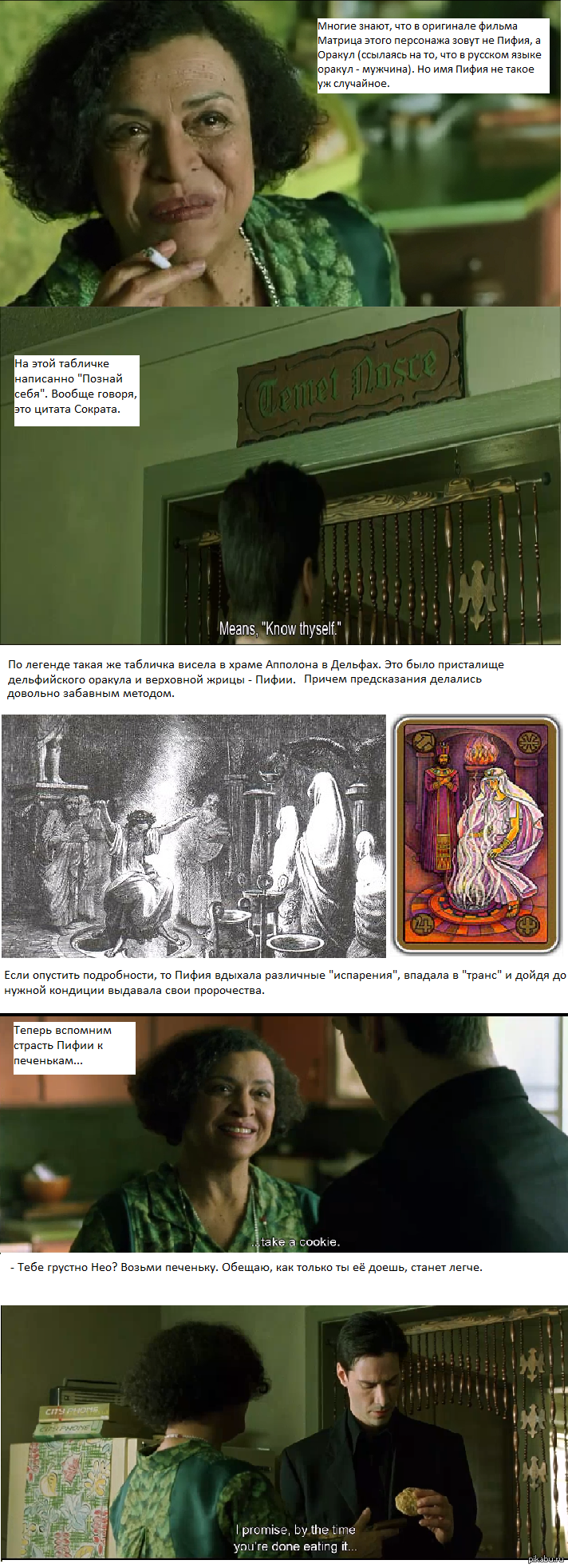 Блин, а я думал, она печет печеньки, потому что еще в первой части было послание для Нео: "следовать за белым кроликом". Кстати, кролик был выбран не случайно, так как пасхальный кролик имеет языческие корни, восходящие к праздникам плодородию и весне.