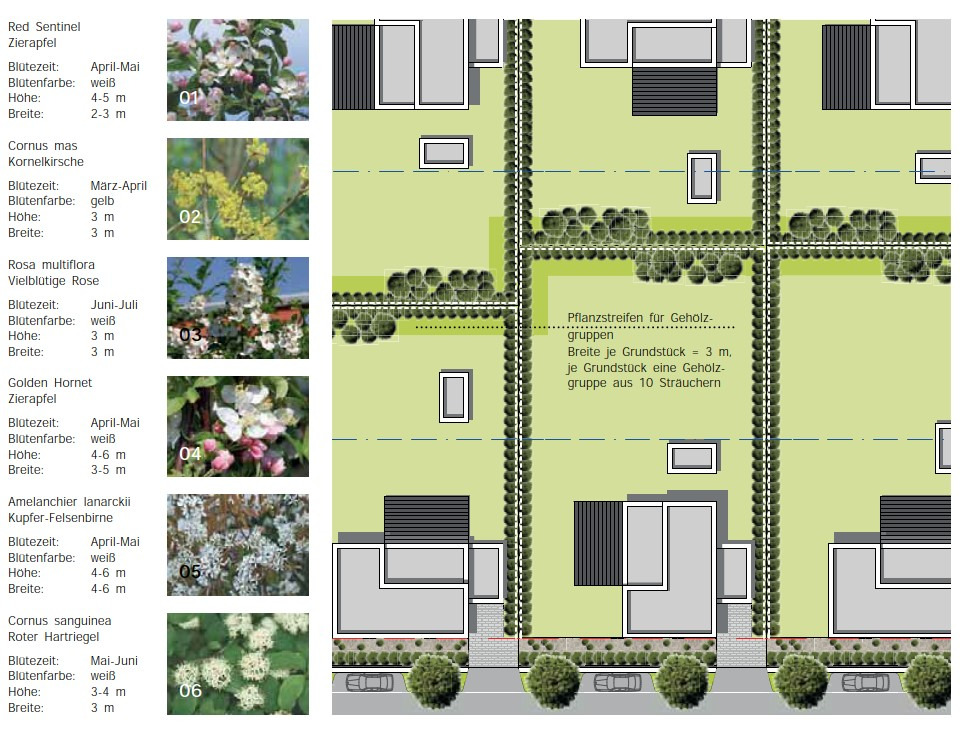 В руководстве по дизайну прописаны виды допустимых деревьев и кустарников, а также место для их посадки