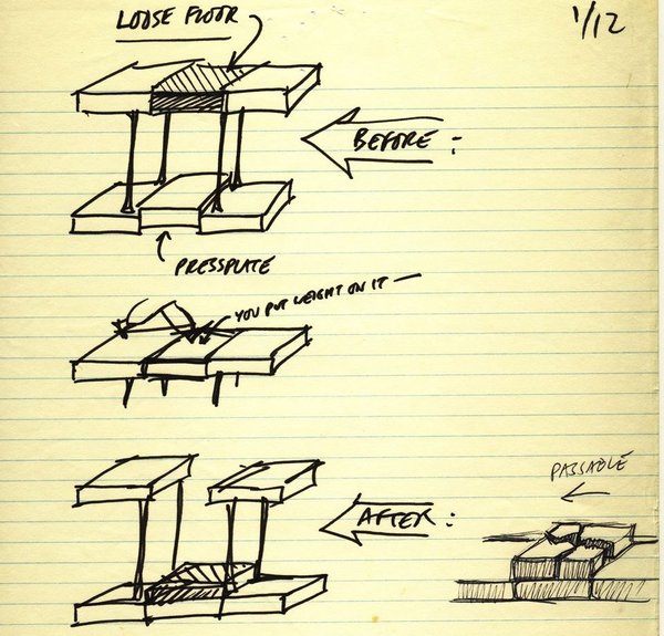 А вот эскиз работы проваливающихся плит, и того, как они работают с плитами-кнопками: