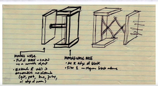Вот одна из многих зарисовок, которые Джордан сделал во время разработки. Тут объясняется механика прыжка. Пацан может прыгнуть на 2, 3 или 4 "дольки", но никак не на 5: