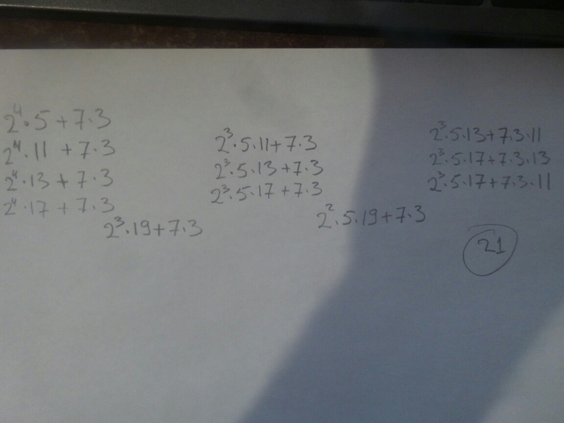 Вот прикрепляю картинку простых чисел(не всех, мне лень расписывать) полученных от числа 21. Я даже значения не буду считать и так знаю, что там простые числа.