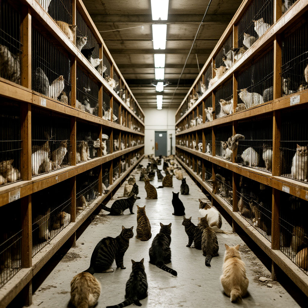 Кошка - животное не стайное, независимое. И на улице ей не приходится делить квадратные метры с десятками себе подобных, постоянно дышать их испражнениями, обмениваться микроорганизмами, конкурировать за место у кормушки. Она может страдать от недостатка еды и тепла, от болезни или травмы, но вот в чем-чем, а в толпе других кошек и котов она при этом совершенно не нуждается. Эта самая толпа для кошки (тем более толпа, от которой некуда деться), - источник сильнейшего стресса, не говоря уже о болезнях, которые при скученном содержании неизбежно перерастают в эпидемии. Вот такая картина, если что, отнюдь не благостна: