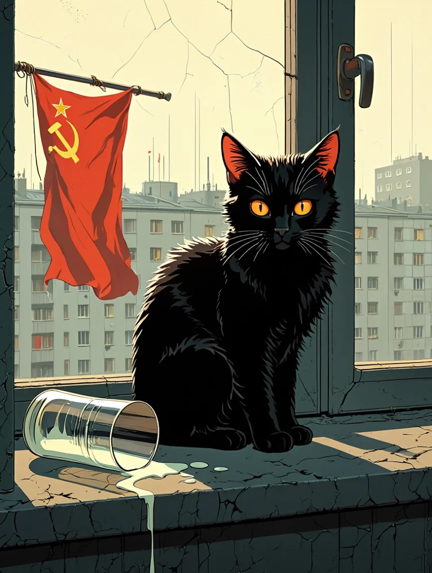 А теперь внимание: в США и Европе давно знали об этом. И ЦРУ, в рамках программы "МЯУ-13", пустило в Советский Союз контрпропаганду: «Давайте им коровье молоко. Пусть коты страдают. Пусть они мстят». И коты мстили. Они царапали партбилеты, гадили в тапки секретарей обкома, топтали газеты с лицом Брежнева. Именно коты начали саботаж снизу. Именно они создали атмосферу тревоги, недоверия и шерсти повсюду. 1991 год. Союз пал.