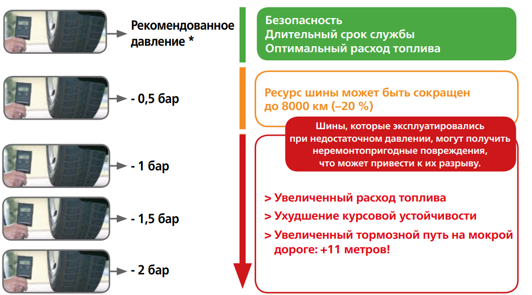 17 tyreconsult TyreConsult Транспорт Почему следует соблюдать именно рекомендованное давление? Серия Шины — полезные советы 2 года назад Как давление влияет на ресурс шины и расход топлива Ну и конечно не стоит забывать о том, как давление влияет на аквапланирование. Количество резины в пятне контакта шины с дорогой уменьшается на 50 % при снижении давления на 0,5 бар Автомобилисты Авто Транспорт Шины 1 Ещё 0
