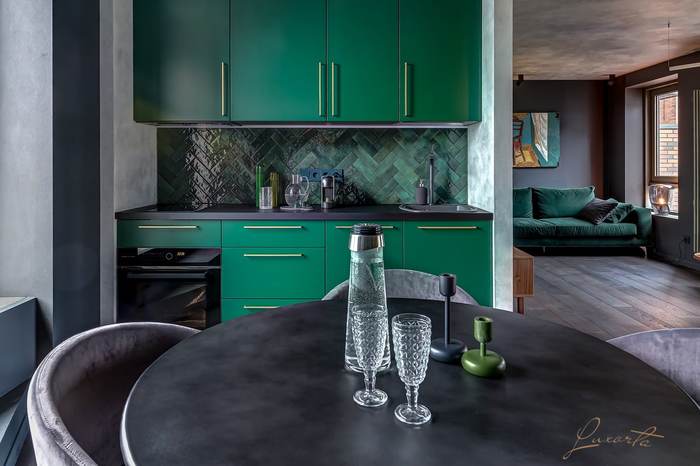 А если хотите упростить работу плиточника, тогда можно сначала уложить фартук, а потом кухню 😆
