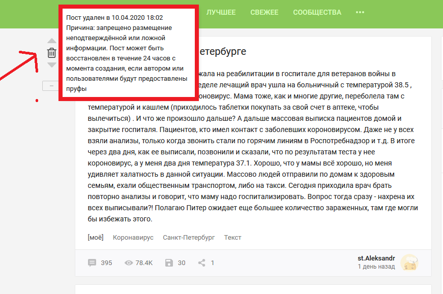 Наткнулся на пост о коронавирусе в Госпитале ветеранов войн в Санкт-Петербурге от "st.Aleksandr".