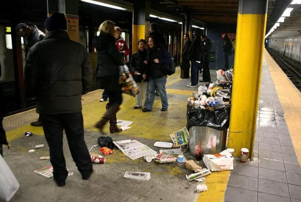 Дневной пассажиропоток в московском метрополитене составляет 7,5-8 миллионов человек. Каждый день. Если мы поставим внутри нашего метро мусорные урны, разрешив выкидывать там недоеденную жратву, недопитые соки, всякие тампоны, фантики от сникерсов и прочие прелести человеческого быта, буквально в тот же день вонь там будет стоять хуже чем в заднице Кракена. Не забывайте, что метро, в отличие от улицы, является все же закрытым помещением. Воздух там циркулирует совершенно не так как на улице, запахи распространяются несколько иначе.