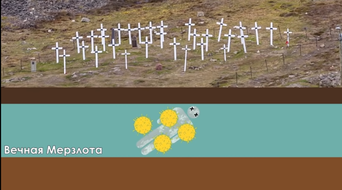 Из 100 000 000 человек, умерших тогда от гриппа, 11 человек были из Лонгйира. Все 11 человек, умерших от болезни, похоронены на местном кладбище. И оказалось, что, когда ты кладёшь тело в огромную "морозилку", то сохраняется не только тело, но и все вирусы внутри.