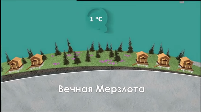 Из-за холодного климата здесь повсеместно распространено такое явление как вечная (многолетняя) мерзлота. Простым языком это значит, что даже, когда температура над поверхностью поднимается выше 0 градусов, температура грунта всё равно остаётся ниже 0.