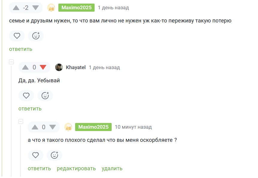 Я конечно не первый день в интернете и понимаю что люди разные, но все равно я такого не ожидал, но в целом я люблю Россия несмотря на все ее недостатки и люблю наших людей даже несмотря на все хамство что я недавно получил.