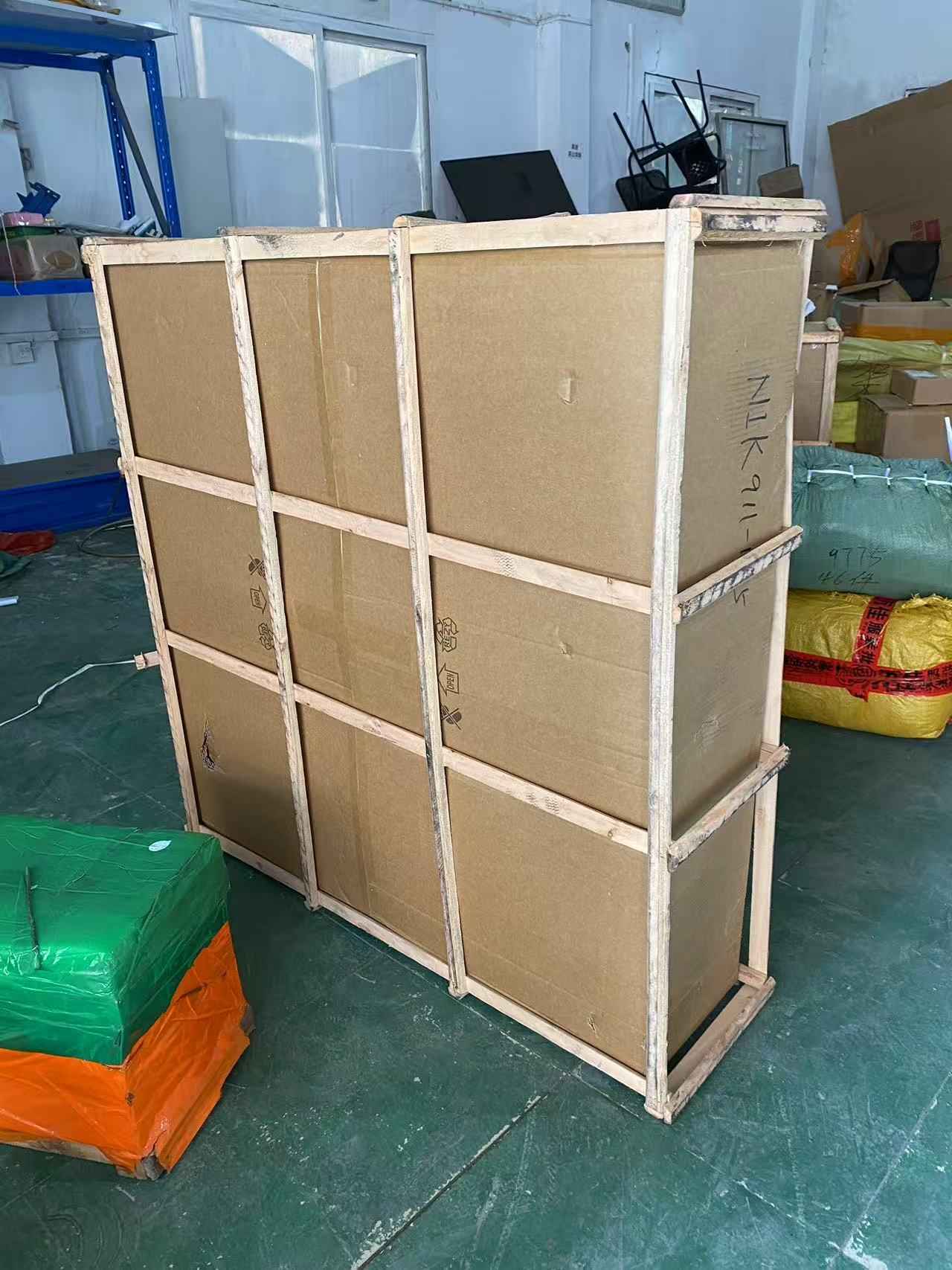 Деревянный каркас: Для мелкой техники (около 10 коробок/180 единиц). Небольшой объем делает паллеты невыгодными (аренда погрузчика в России — ~2000 руб./раз), но требуется защита от сдавливания — каркас обеспечивает полную поддержку.
