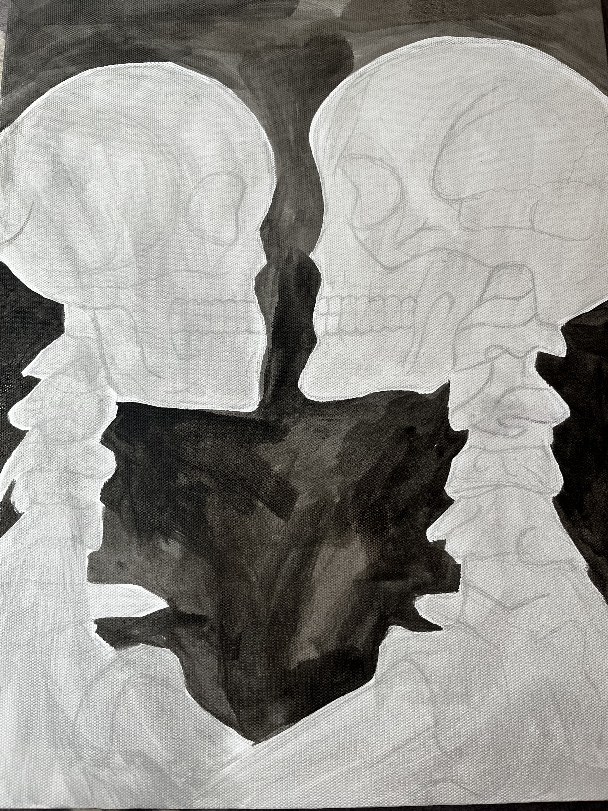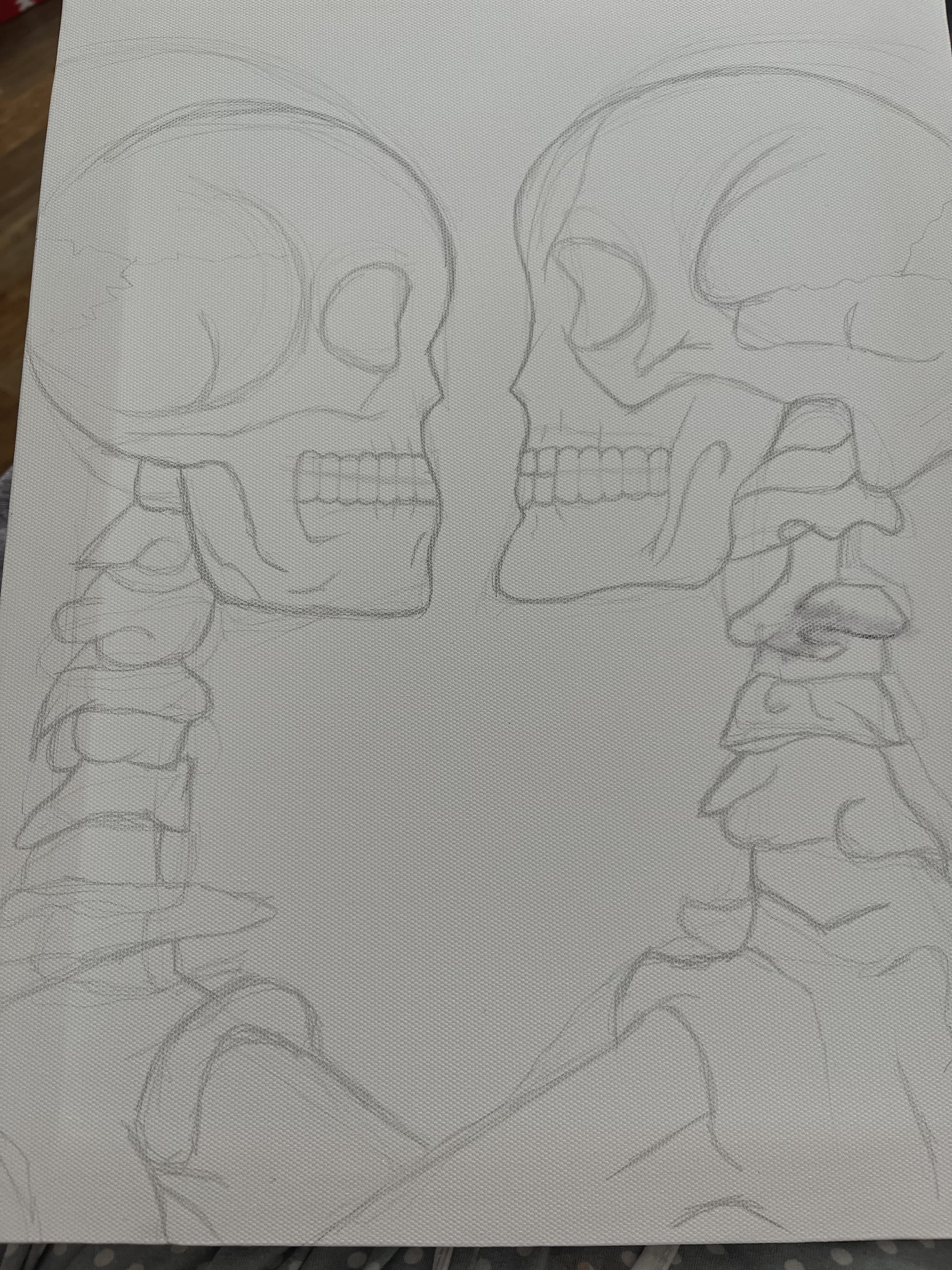 При рисовании на холсте я очень редко делаю карандашный набросок. На это есть несколько причин. Во первых, я не могу быть уверена, что когда я начну рисовать карандаш не размажется по холсту. Так как я начинала рисовать с акварели это происходило довольно часто просто из-за того что при рисование акварелью используется много воды. А во вторых, я просто не вижу в этом необходимости. Если я срисовываю какую-то идею из пинтереста мне хватает просто легкой разметки или обозначение габаритов картины чтобы удачно вписать композицию. Дальше я рисую сверяясь с картинкой. Если же это какая то моя идея обычно я делаю набросок на листе бумаги и только потом приступаю к рисованию на холсте.