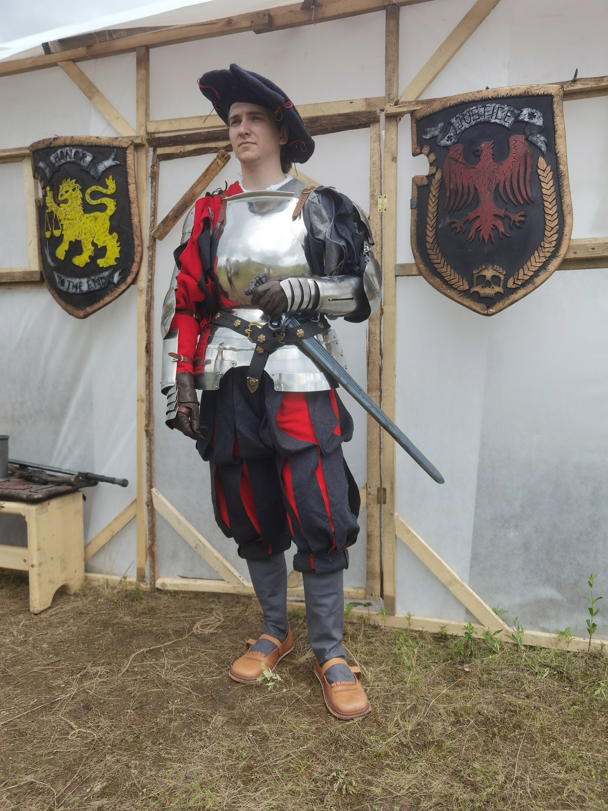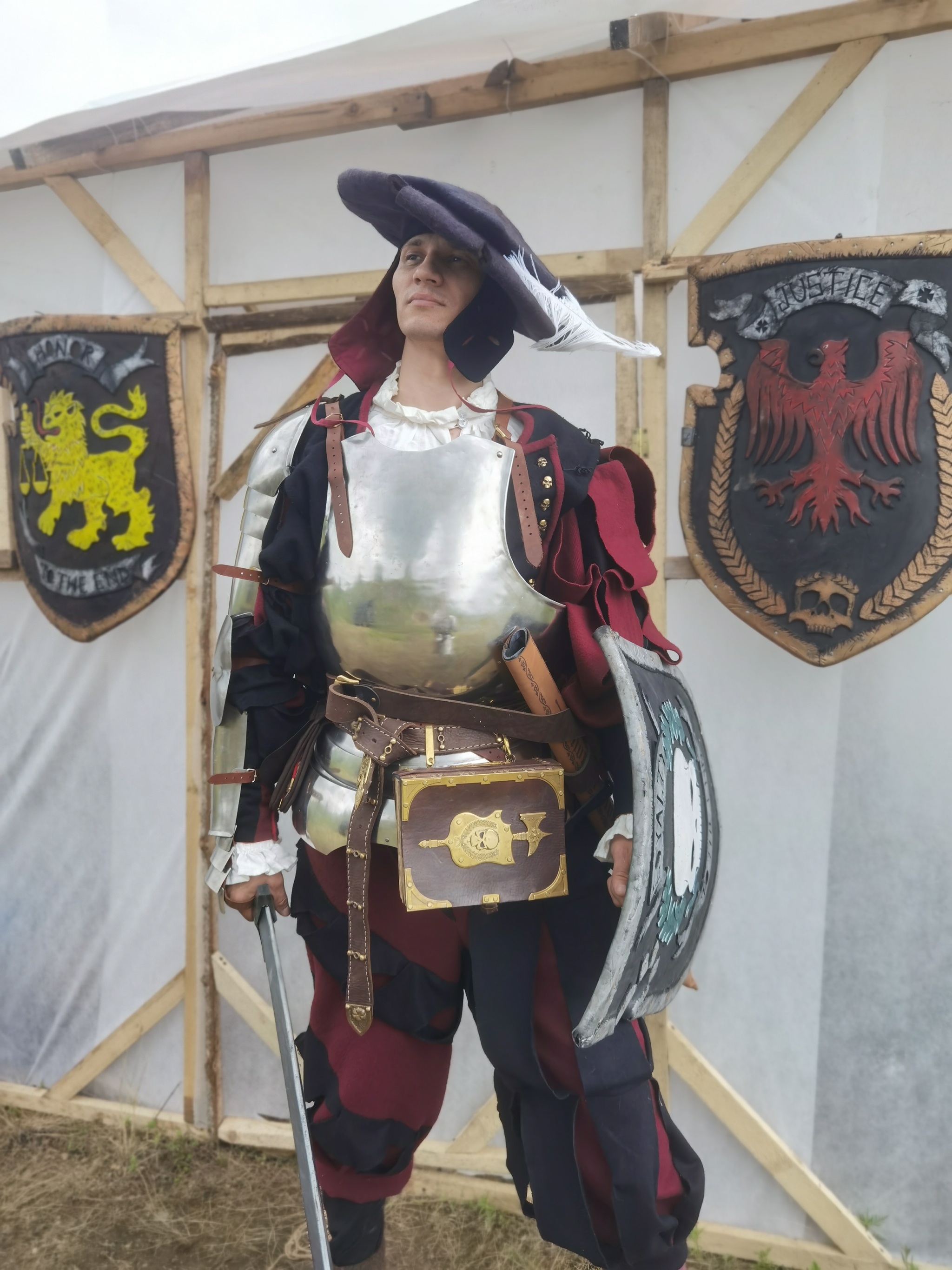 Что до костюмов – Warhammer даёт свободу, которой не хватает строгой реконструкции. Это гиперболизированное средневековье, здесь все эпичное и яркое. Твой плащ может быть алым, как знамя Сигмара, доспехи – покрыты гравировкой с литаниями, символами веры, а внешний вид – отражать не просто исторический прототип, а твою уникальную легенду. При этом подход для меня остаётся всё тем же – скрупулёзная детализация и внимание к деталям, натуральные историчные материалы, как в реконструкции. Всё должно быть по максимуму по-настоящему. ЛАРП-оружие позволяет войску и персонажам быть даже историчнее, чем реконструкции (не нужно использовать шлема тем, кто их носить не должен, скрытку, неисторичную защиту кистей, чаще использовать открытые шлема, как это и было.