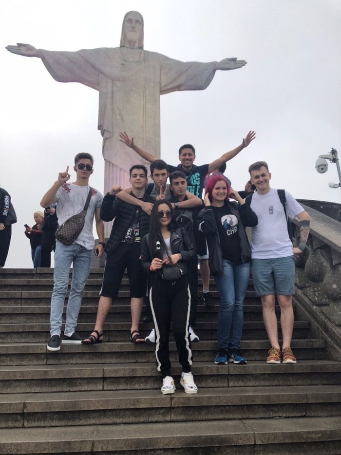 Команда «Сборная_ЧР» по мобильной игре Free Fire у статуи Христа-Искупителя. Рио-де-Жанейро, Бразилия