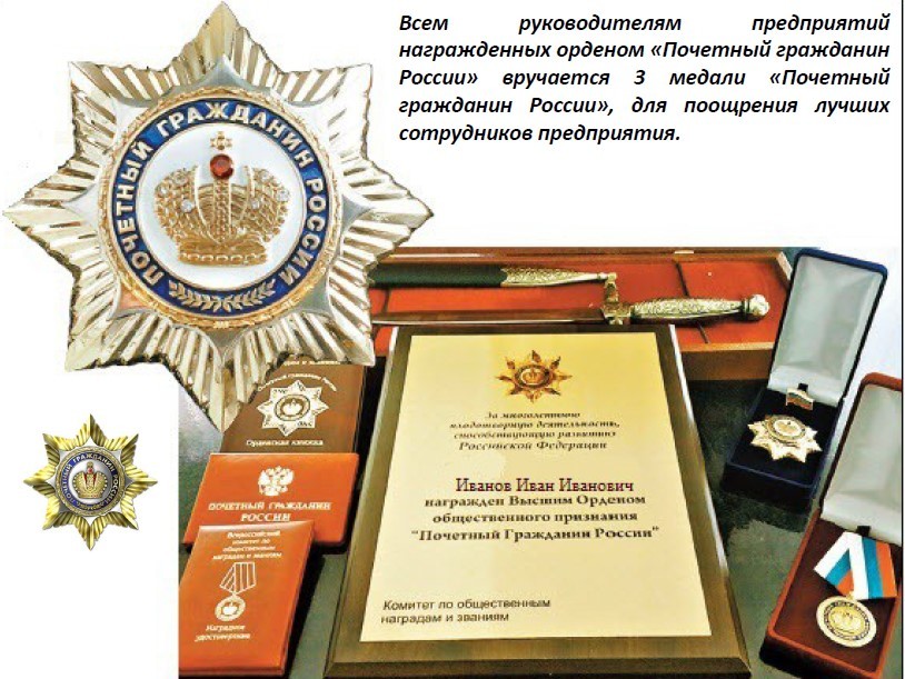 "Всероссийский комитет по наградам и званиям" совместно с издательством "85 регионов", организуют церемонию награждения Орденом "Почетный гражданин России" при поддержке: