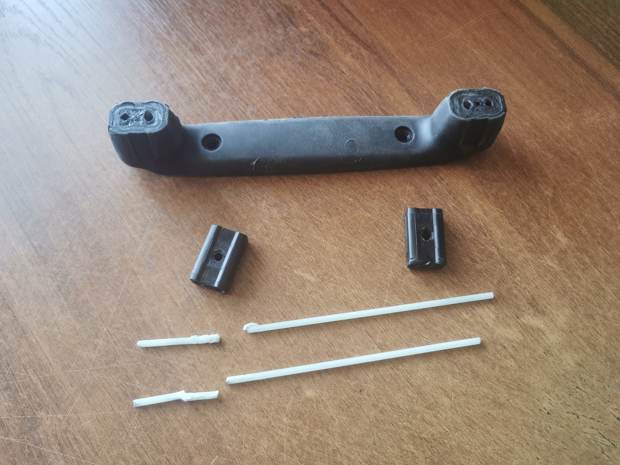 Недавно написал друг, говорит что без сумки, как без рук. Сумка как новая, а вот с ручкой надо что-то сделать. На вид задача простая - перепечатать полручки и заменить тонкие палочки (кажется, стекловолокно) на металлические шпильки.