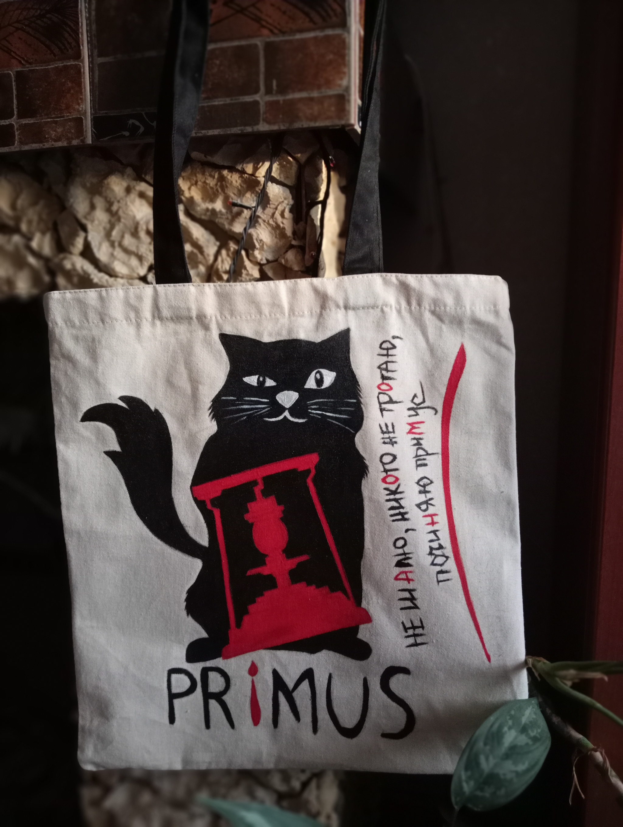 В моем любимом книжном магазине продаются вот таки шопперы с писателями, поэтами и художниками. Выбор пал на Михаила Афанасьевича