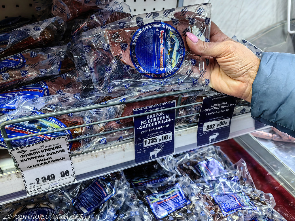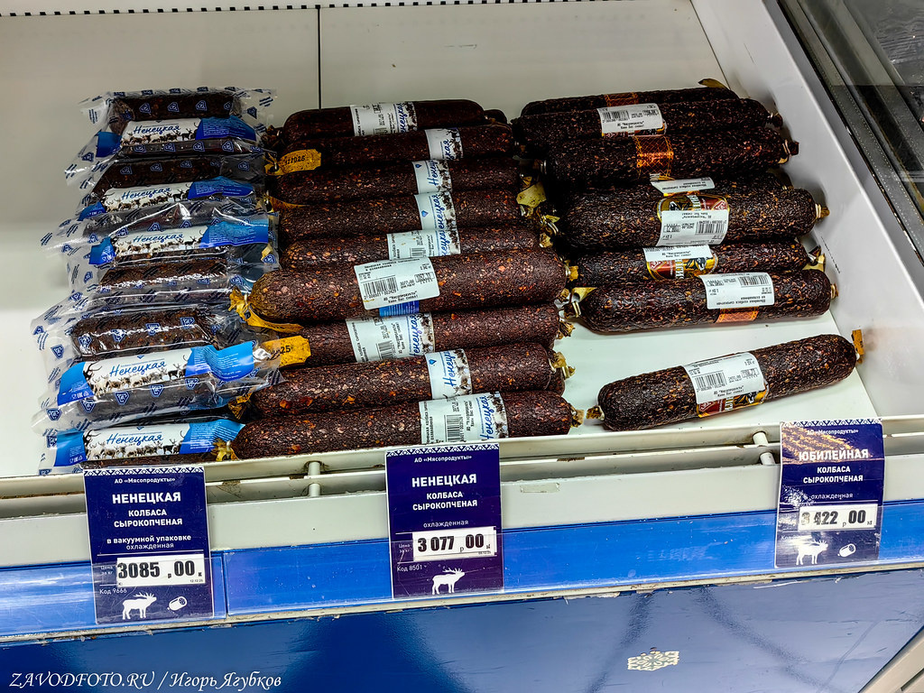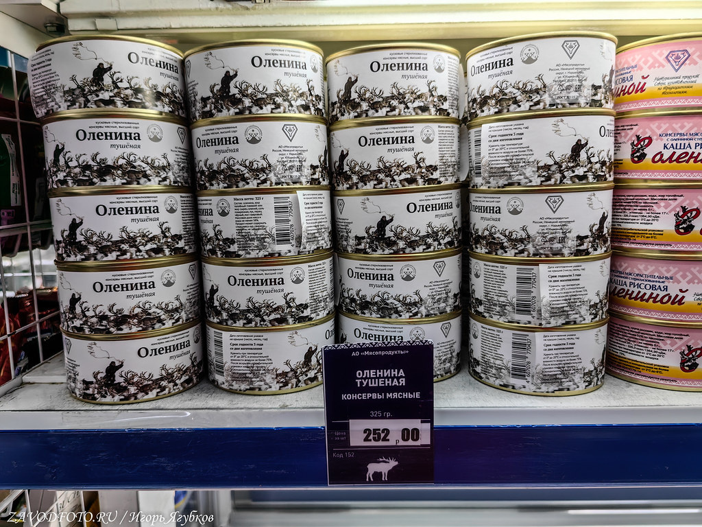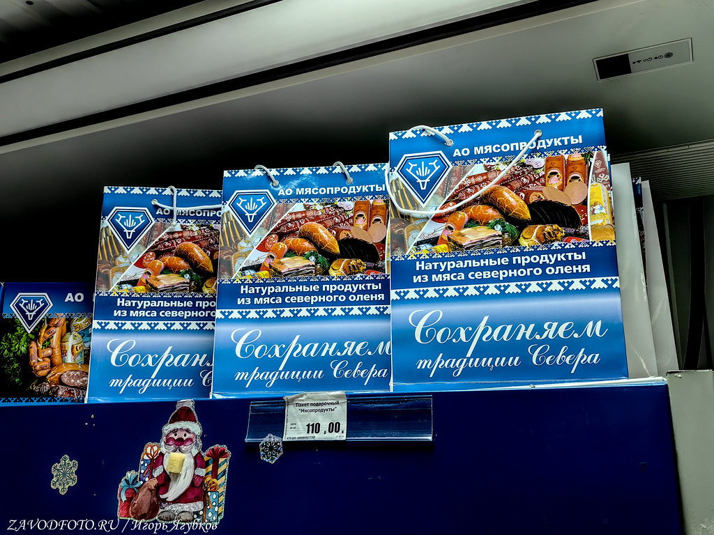 В самом Нарьян-Мар промышленности практически нет, может это и к лучшему, атмосфера чище, нефть-газ добывают чуть дальше. Зато тут расположен неплохой свой мясокомбинат, который в оленьей теме точно знает толк. Плюс у него есть свои магазинчики по городе, где это самое мясо можно купить в хорошем ассортименте.