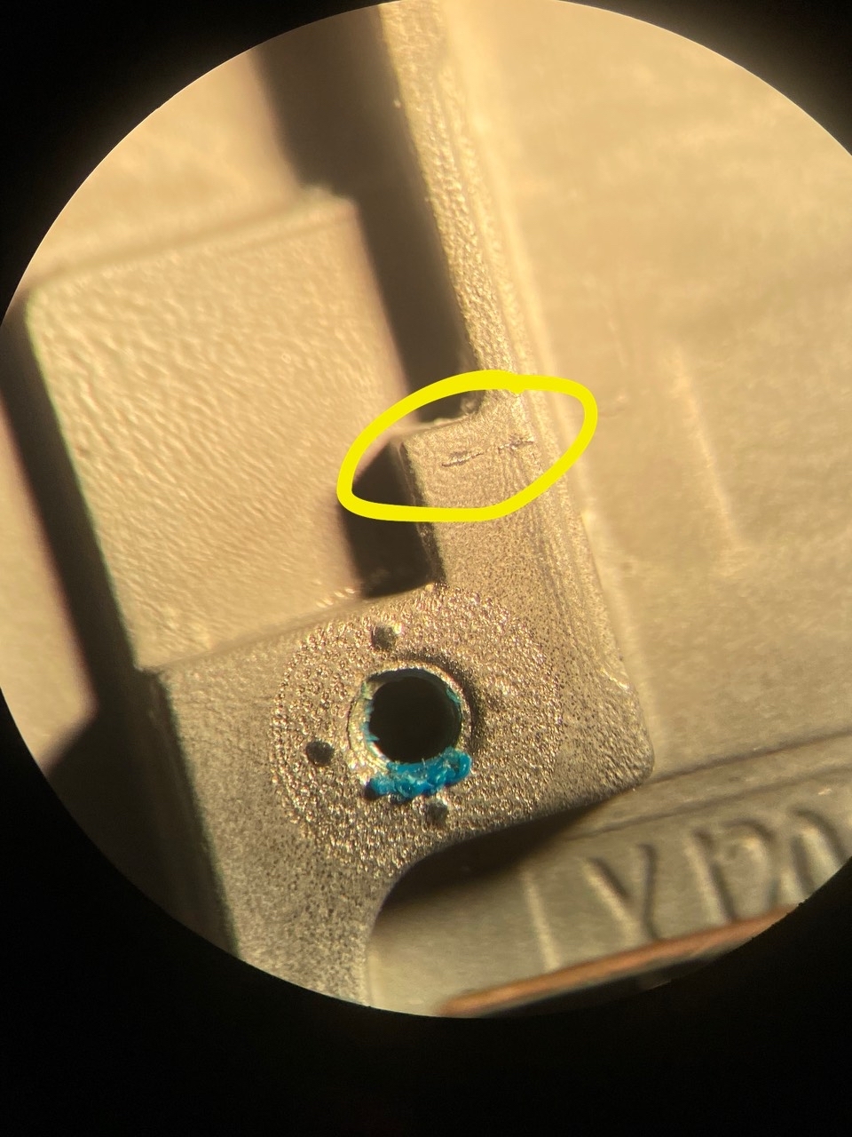 От такие вот дела. Заводской брак то ли отливки, то ли обработки, в результате образовалась острая торчашка, которая со временем процарапала лак на плате и замкнула SIM_DETECT на землю, так как сама рама тоже является землей и общим минусом. Это и является причиной дефекта: телефон всё время думает, что в нём вообще нет лотка, благодаря тому что симдетект закорочен на землю, но не концевиком в слоте, а корпусом телефона. А раз нет лотка, то и симок быть не может, у них просто из-за этого даже питания не поднимаются 😁