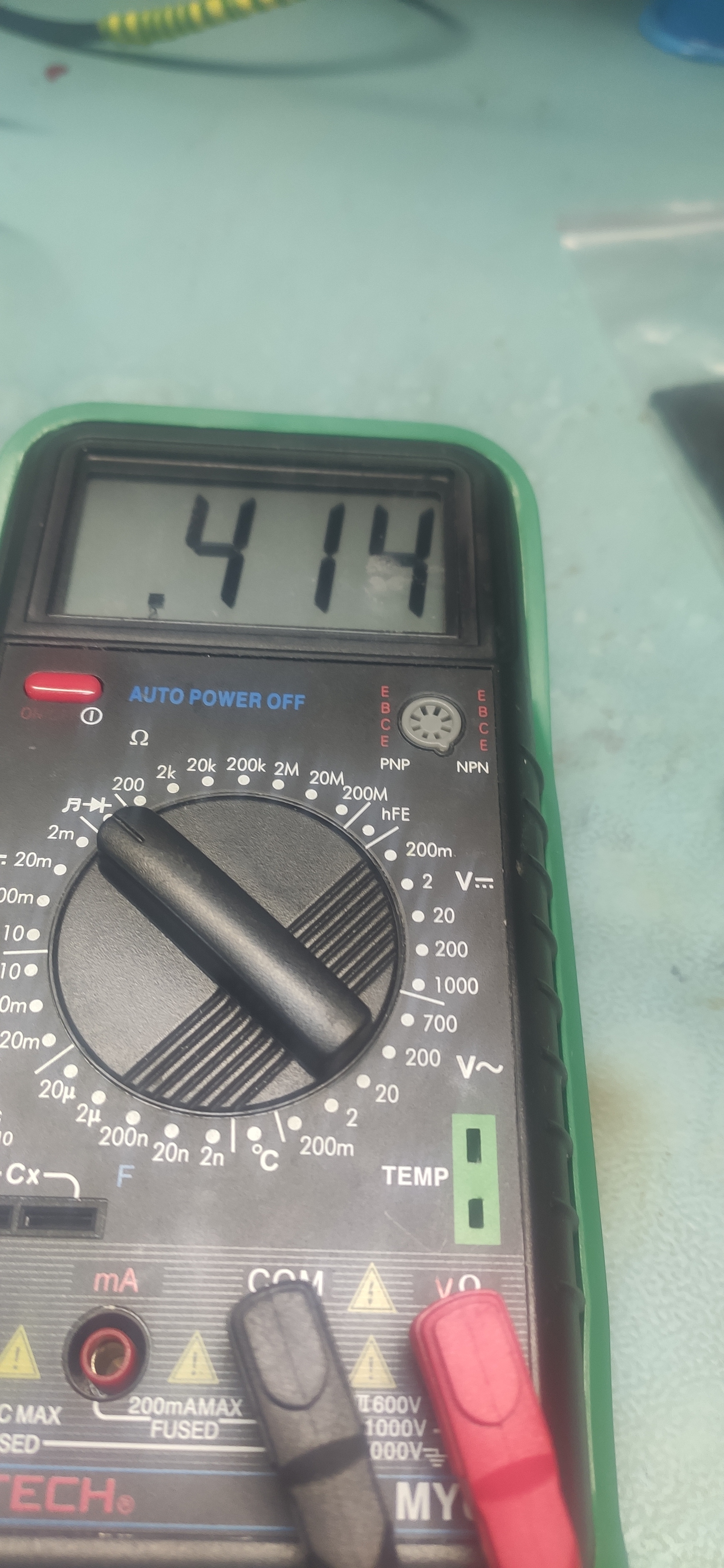 Теперь делаем замеры на том -же конденсаторе в режиме диодной прозвонки и видим ,что сопротивление по линии питания с одним установленным процессором в норме.