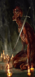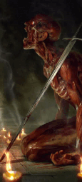 Классная работа, но не хватает изменяющегося отражения в верхней, светлой части меча. Внизу по нему проходит блик, но вверху почему-то не проявляется. Еще картинку улучшило бы изменение тени на плече от меча во время движения. В идеале, блики должны как-то реагировать на неровное мерцание свечей - вот кстати они получились очень годно.