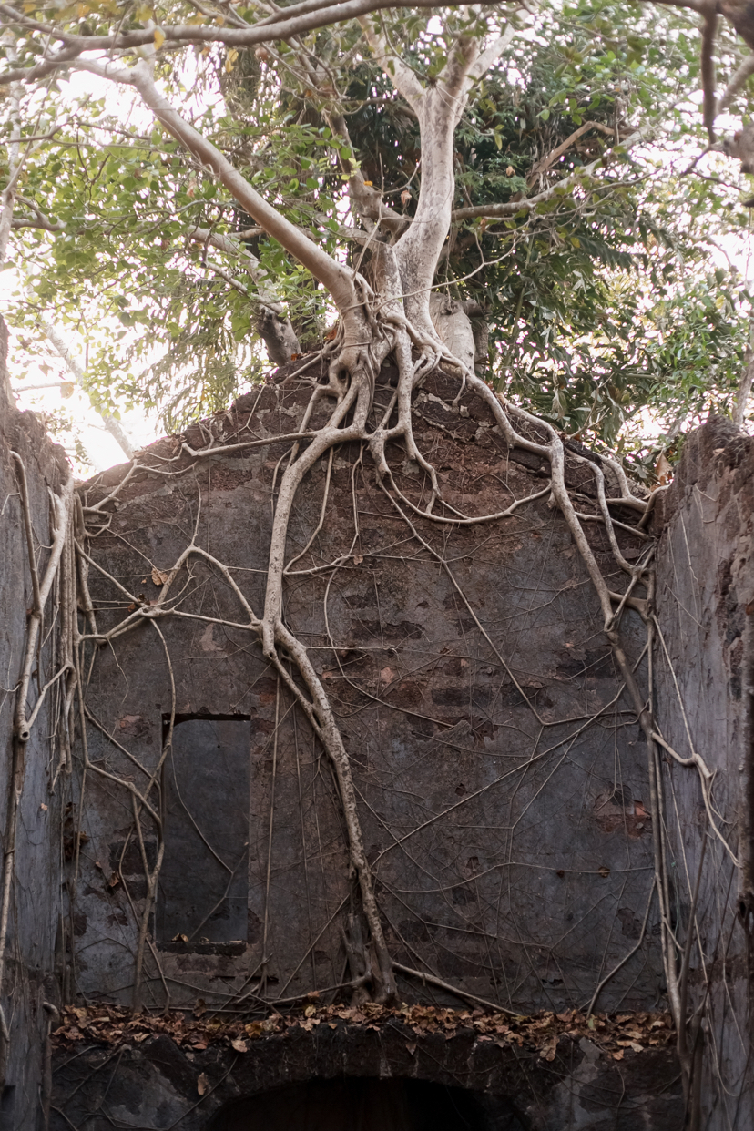 Съездили на старинный заброшенный португальский форт и посмотрели, как военные укрепления со временем побеждают мощные корни деревьев. Увидели летучую мышь, спящую в темном прохладном закутке. Посмотрели на океан с высоты.