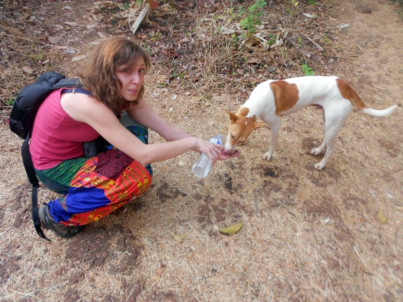 Я напоила из рук бродячую собаку, которая шла за нами и тяжело дышала. Сейчас я бы так не стала делать, после Вовиного опыта уколов от бешенства во Вьетнаме, после того, как он погладил милого ёжика. Налила бы ей в какую-то емкость.