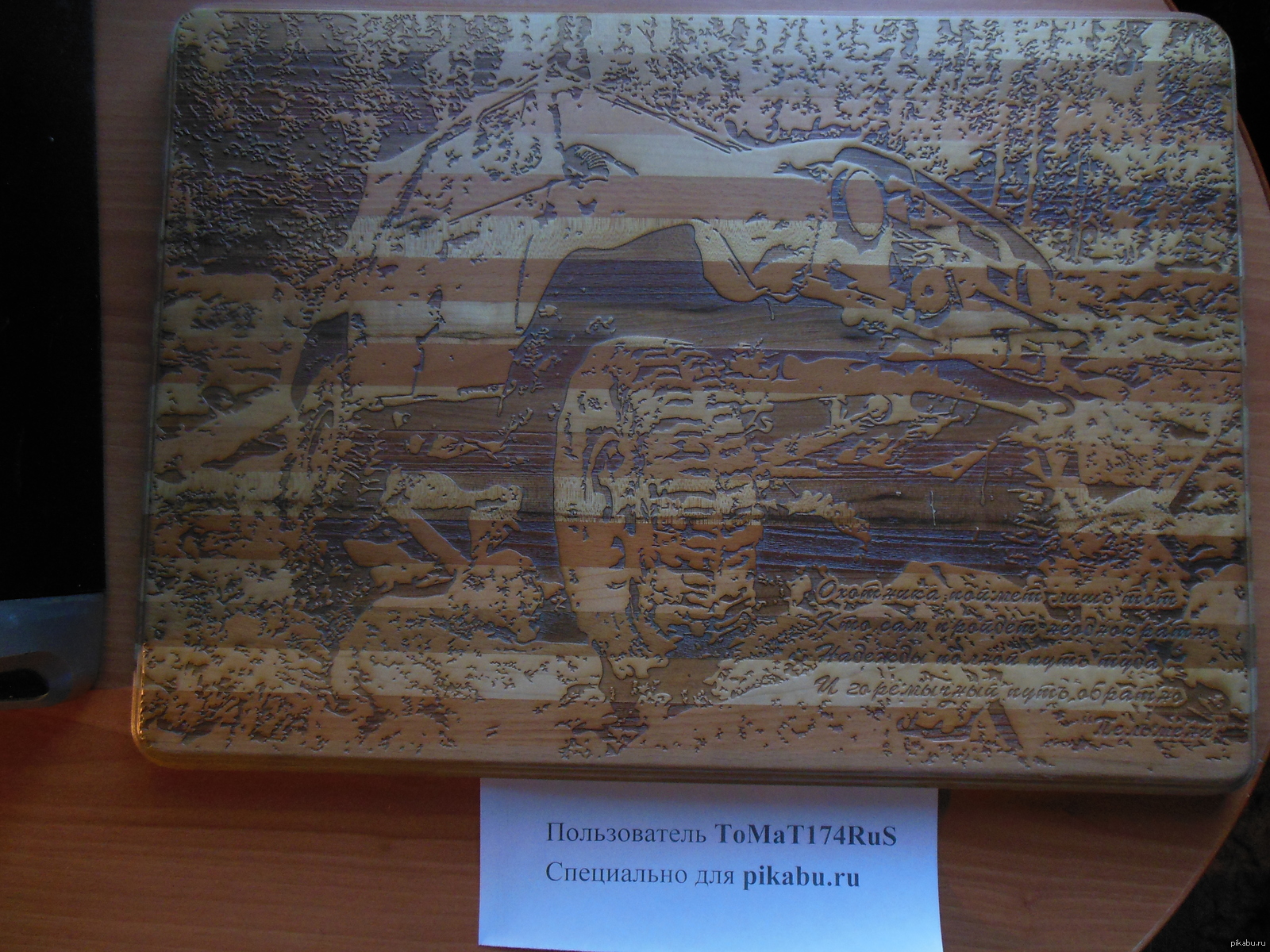 20 Tomat74 Подарили на день рождение друзья. 10 лет назад Вот такую разделочную доску подарили мне друзья на день рождение. [моё] Резьба по дереву Разделочная доска УАЗ Триал трофи