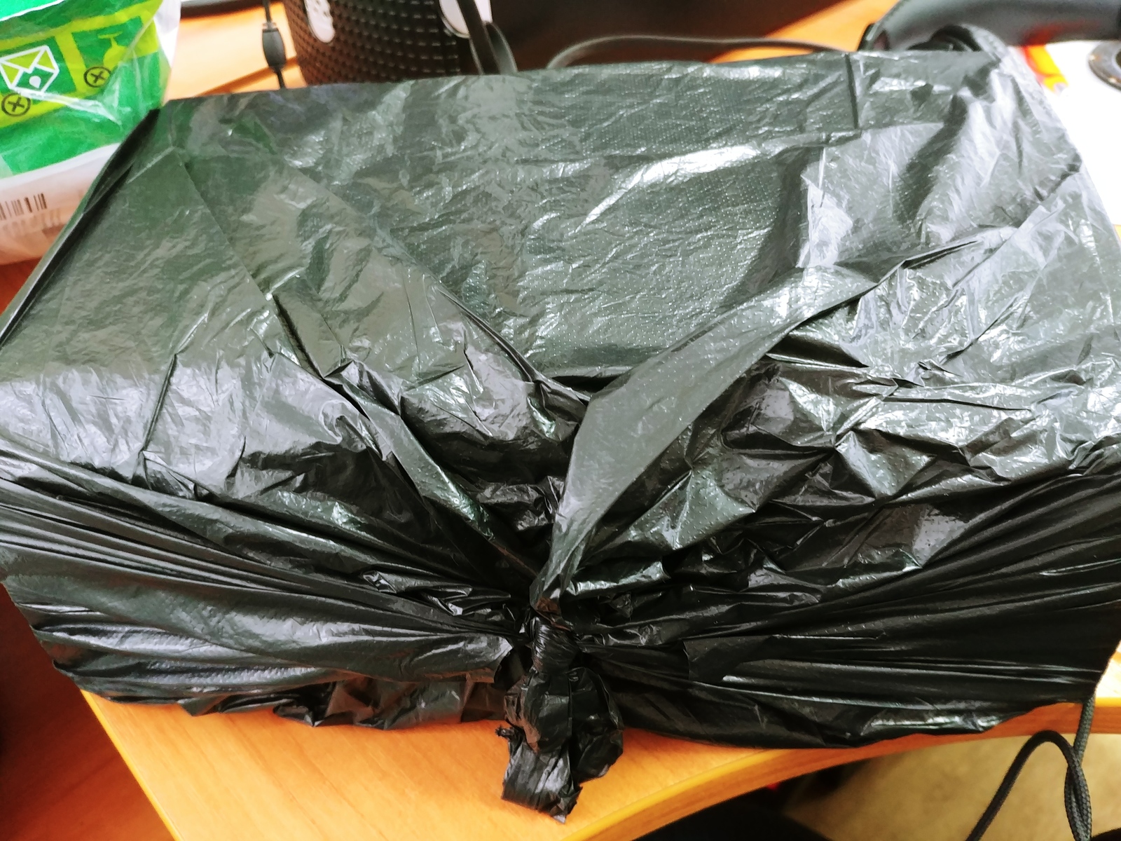 Разумеется, азарт и кружащие вокруг коллеги не оставили посылке никаких шансов, пришлось вскрывать прямо здесь и сейчас. Интригующий чОооООрный-пречООоооОрный пакет: