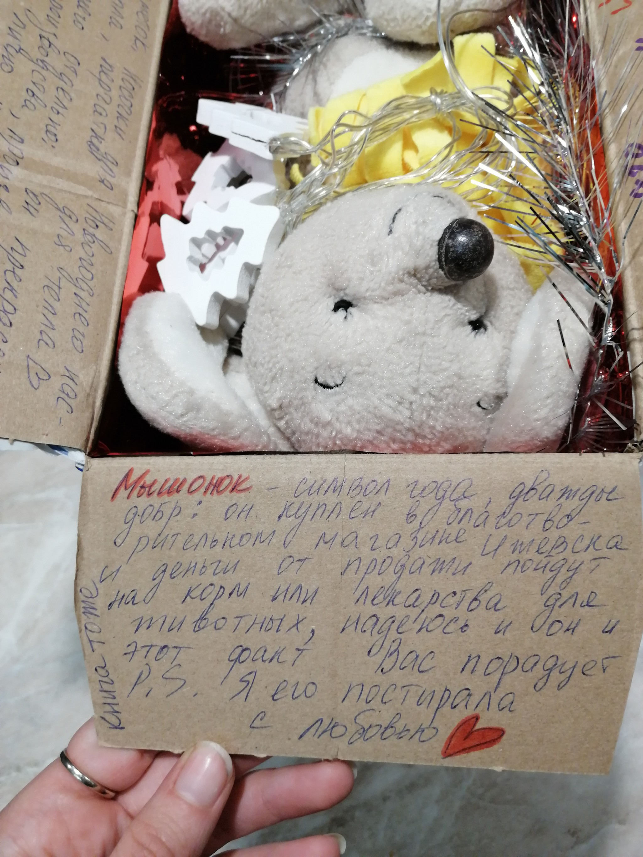 В коробочке было послание и мыш!