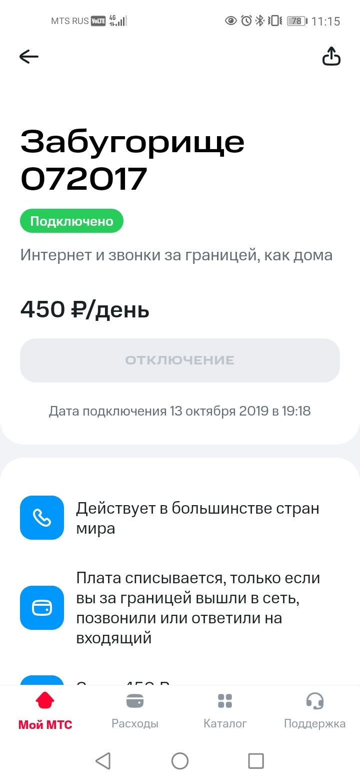 Услуга подключена 13 октября 2019 года, а переход на МТС у меня был в декабре 2020 года.