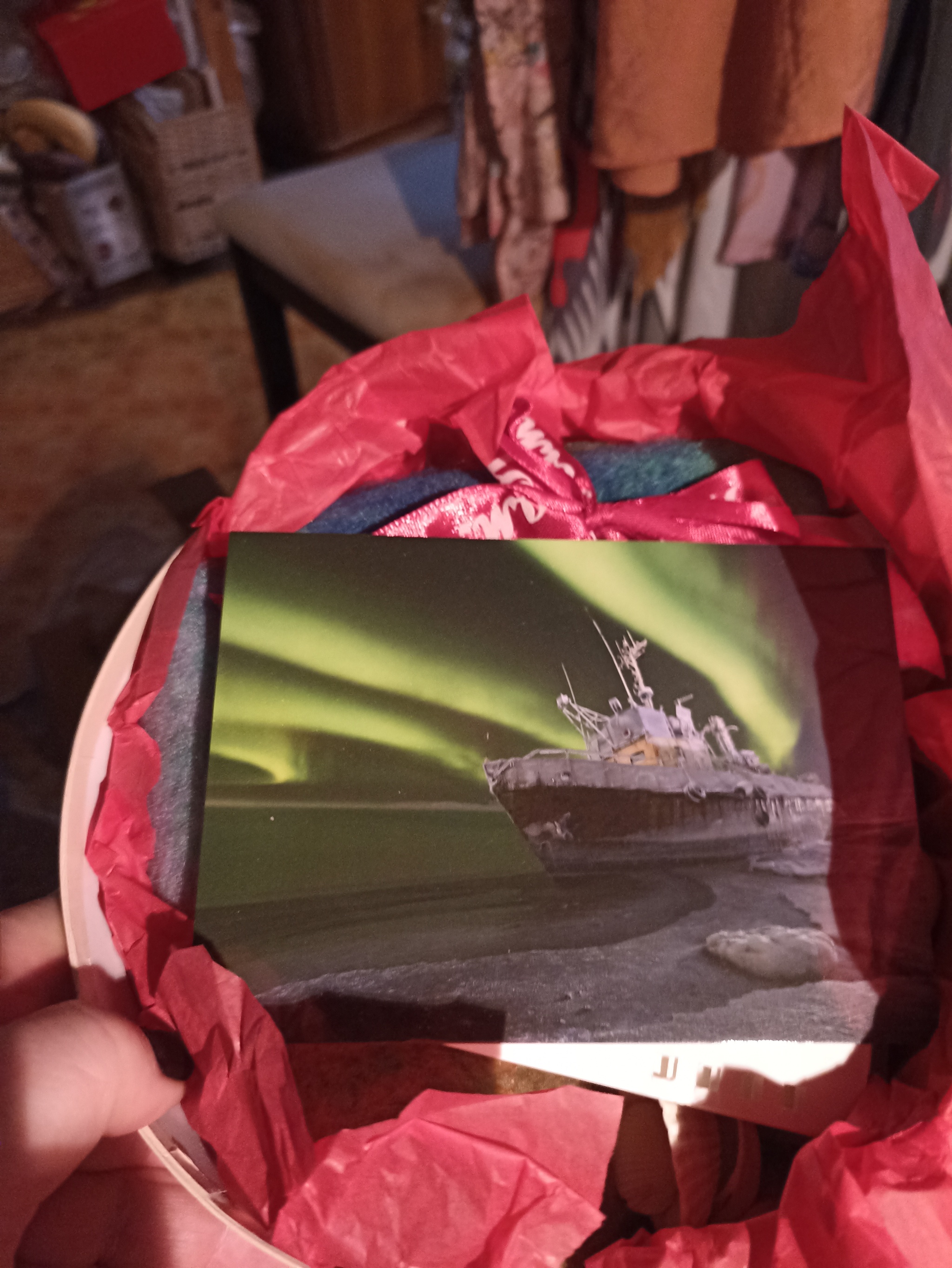 При открытии меня встретило северное сияние, замечательное письмо и карточка для желаний.