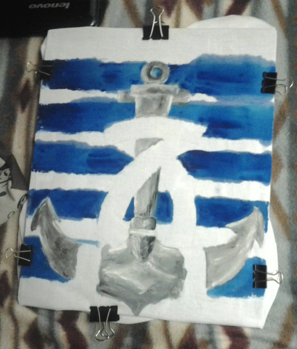 17 MsYellowPear Подарок на День рождения. 12 лет назад долго думала, что подарить сестре на День рождения. Потом вспомнила, что она любит морские мотивы в одежде, и руки у меня (вроде) из нужного места растут. [моё] День рождения Футболка Море Краски Тег Ручная работа