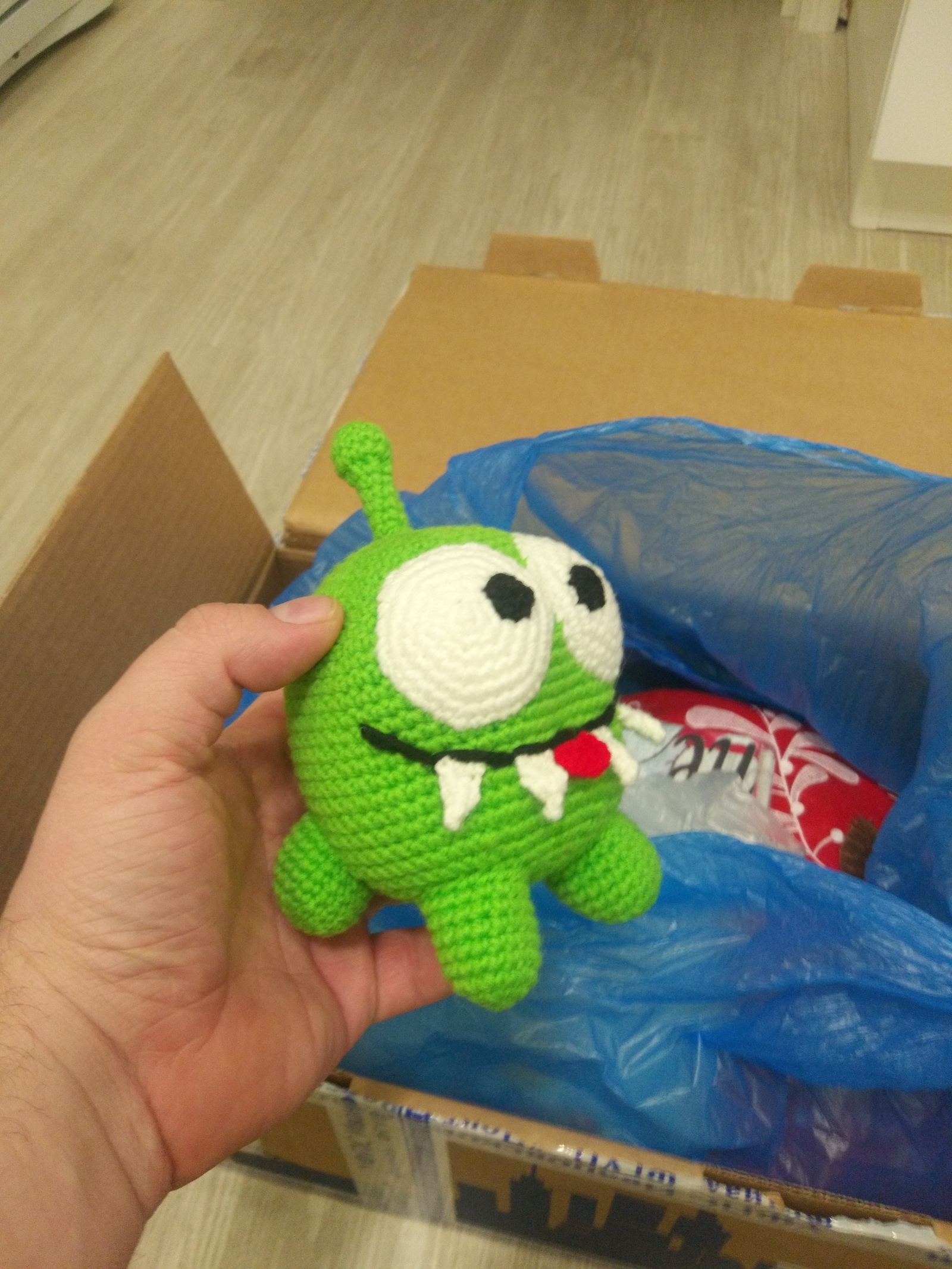 Сверху меня встретил Зеленый инопланетянин) Явно связанный вручную. Это ОЧЕНЬ круто.