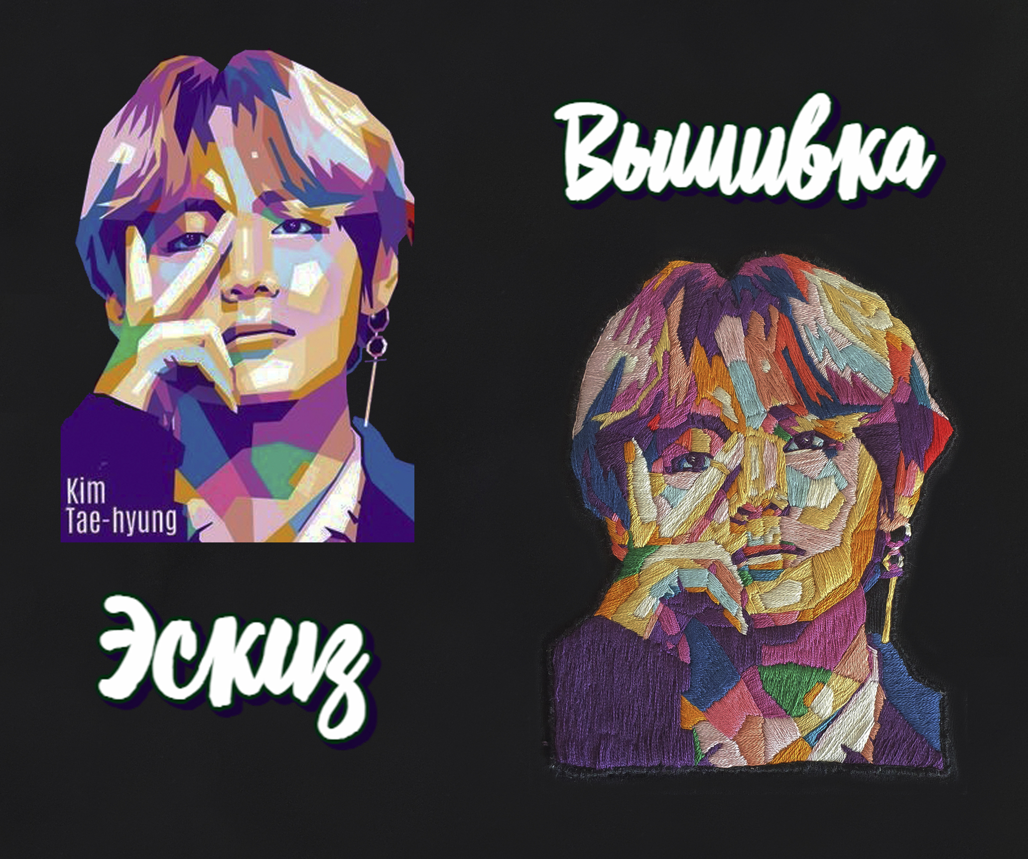 Подарок поклоннице BTS. Ручная вышивка Kim Tae-hyung