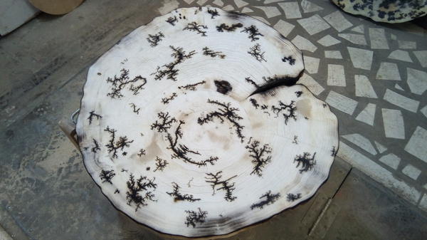 Решил давно еще сделать кофейный столик любимой тёщеньке на юбилей, проект делается опять же в свободное от работы время. Материал: профиль металлический 10мм толщина - 3 метра, пень - тополь, шарики из подшипника качения. Столешницу отрезал бензопилой, затем выравнил рубанком - ленточная шлифмашина - виброшлифмашина. Мучался с ним не мало, толи само по себе такое дерево, толи возраст его так проявляется. Весь деревообрабатывающий инструмент и в "ПЕРВУЮ очередь РУБАНОК, лупит его в дым просто. При обработке стоит туман из дыма и пыли, опилок нет вообще, Кароче он как камень. Задумка была конечно сделать с белой столешницей, но акрил дал этот "мокрый" эффект. Ок акрил, я учту это и в следущий раз ты ляжешь на лак). Проект сделан можно сказать "на коленках" все в том же гараже с Лениным. Это первый блин так сказать, еще осталось 3 кольца таких, позже покажу что там намудрил). Пост не ради понту, поэтому фотки со сраного телефона в гаражном освещении в рабочем процессе.