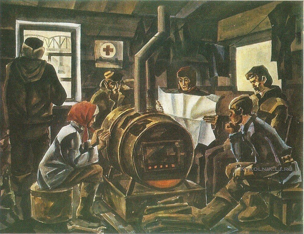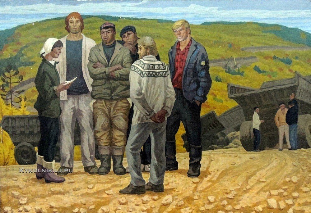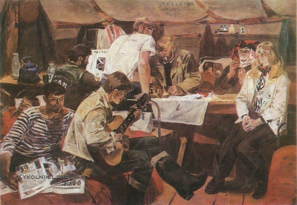 Дмитриенко Василий Тихонович (1950) «Мостостроители» из серии «Люди БАМа» 1974
