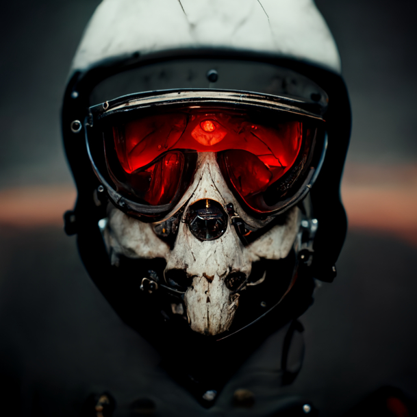 fighter pilot, skull, red eyes, scary, cryptic, unreal engine, octane rendering, photo realistic, 8K, 16:9, dramatic lighting