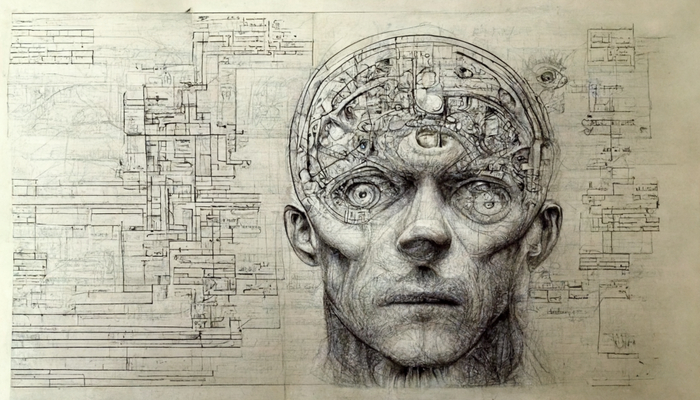 blueprint drawing of human mind, sketch, detailed, intricatedetail