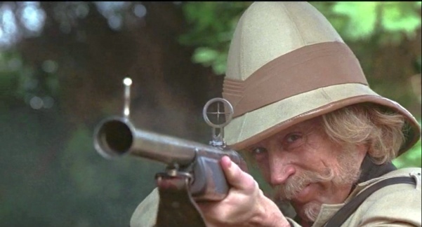 кстати что за винтовка с очень мощной отдачей где в помещении стреляют? какой у неё патрон интересно?