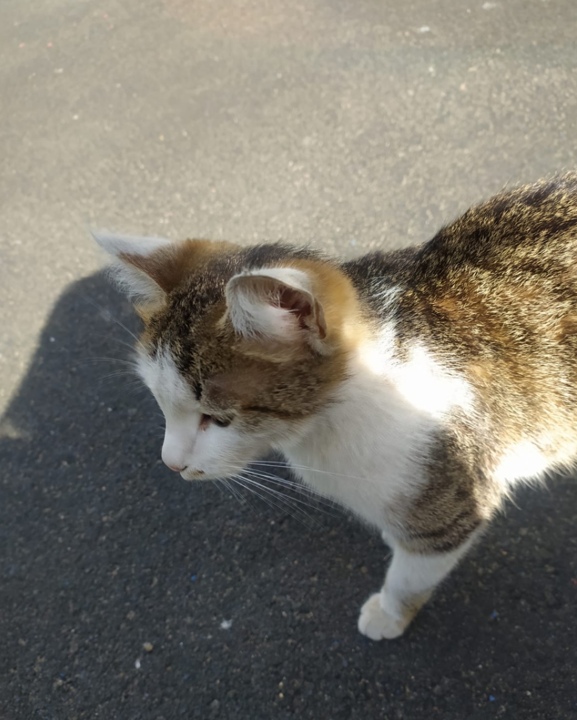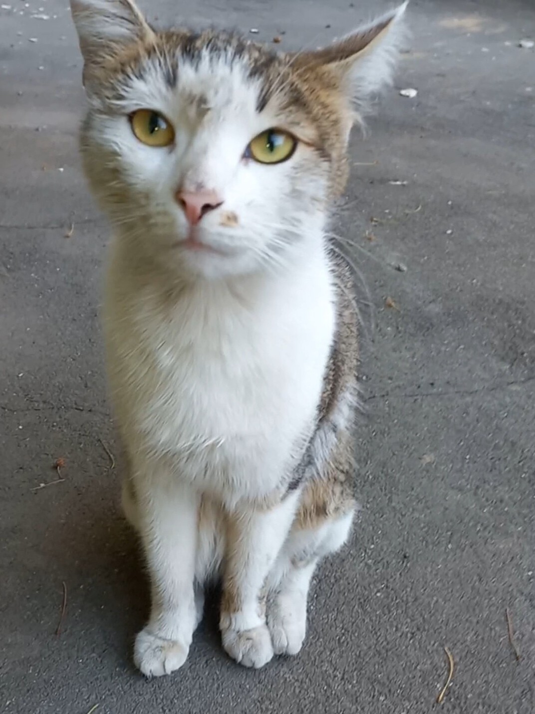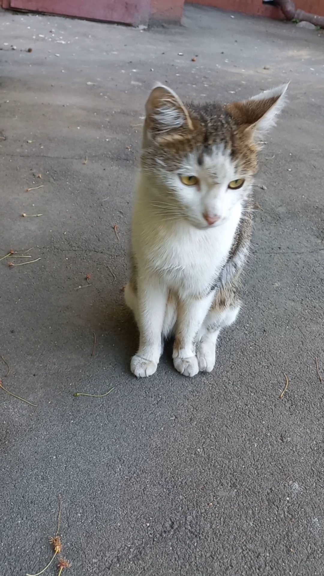 А вот такая несчастная она ,когда сидит около дома в ожиданни кошачьего чуда ( внимания человека )