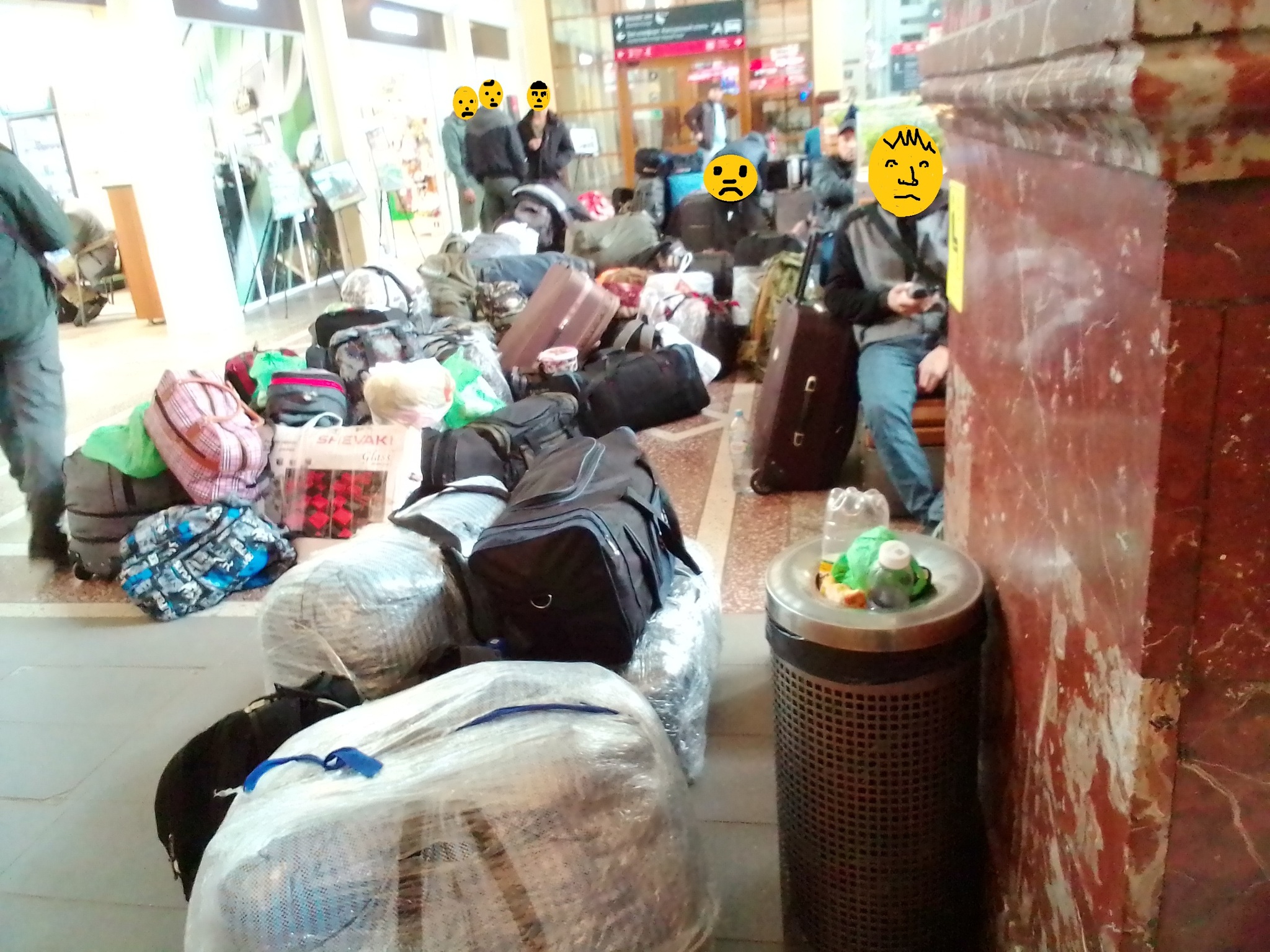 Пожалуй, стоит сказать несколько слов о вокзале Волгограда. Вообще, хороший вокзал. Красивый. Разве что плитка на полу местами расколота, хотя после реконструкции вокзала прошло всего десять лет. Но в остальном очень понравился. И композиция "Апофеоз труда", воссозданная в меди - тоже. Лавки с деревянной обшивкой в залах ожидания. Помню, как однажды сильно простудился на вокзале в Ростове, отсидев ночь на их железной лавке. Тут волгоградскому вокзалу прям зачёт. Иностранные специалисты, забившие все скамьи (это надо видеть) и завалившие оставшееся пространство баулами, тоже оценили их удобство. Они, кстати, показали, где находятся розетки. Я-то возмущался, что на вокзале ни одной розетки нет, кроме тех, к которым терминалы подключены. А розетки, оказывается, по низу лавок сделаны! Представляю, какое у меня было глупое лицо, когда иностранные товарищи, что-то балакая, пристроили к ним заряжаться свои телефоны.