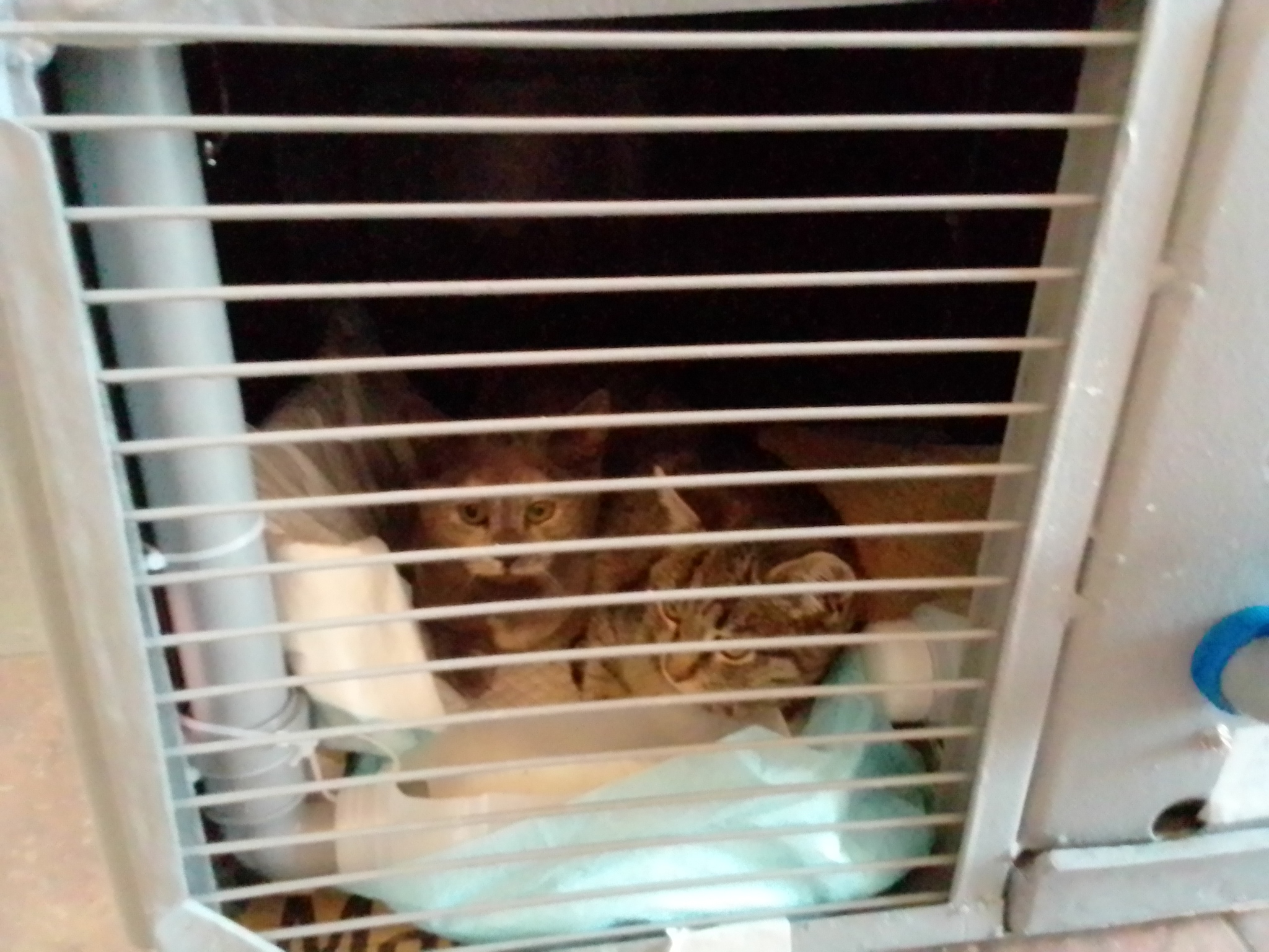 Ближайшая станция, с которой можно посадить котят на поезд до Челябинска - Волгоград. Всё же хорошо, что у РЖД есть услуга перевозки животных без сопровождения. Стоит, правда, дорого, и клетку для перевозки подобрать нелегко. Учитывая, что в дороге ребята (то есть девчата) будут около двух суток, о пластиковой переноске и думать не стали. Тем более, в стоимость услуги перевозки заложена уборка, но только если клетка оборудована выдвижным лотком. Поэтому клетку мы с котятами изготовили сами. Получилось по-челябински сурово, для переноски тяжеловата, но для перевозки самое то, и с задачами своими справляется замечательно.