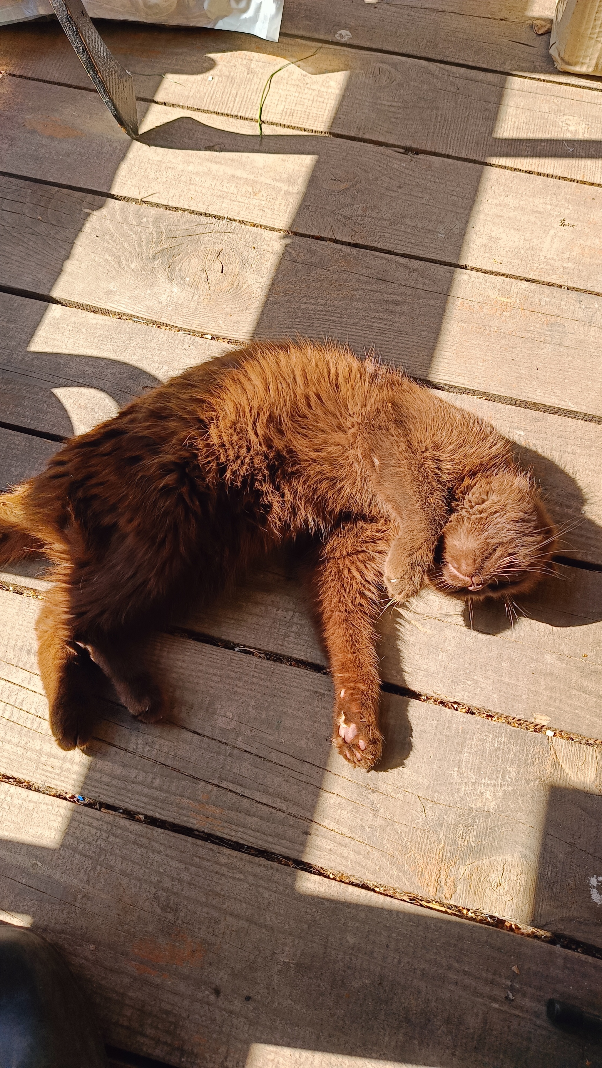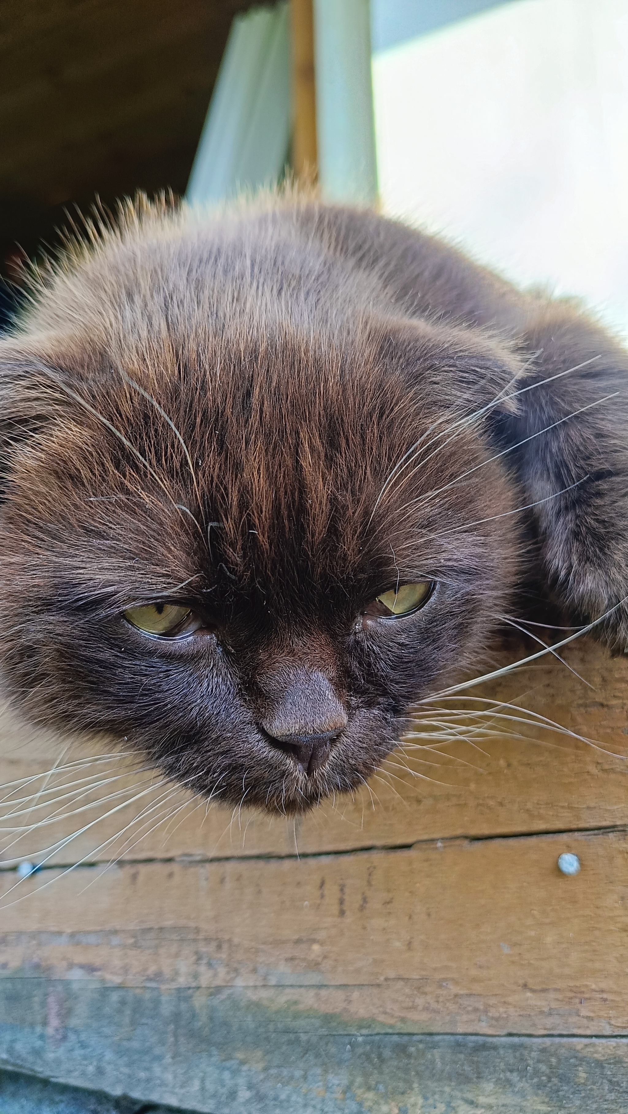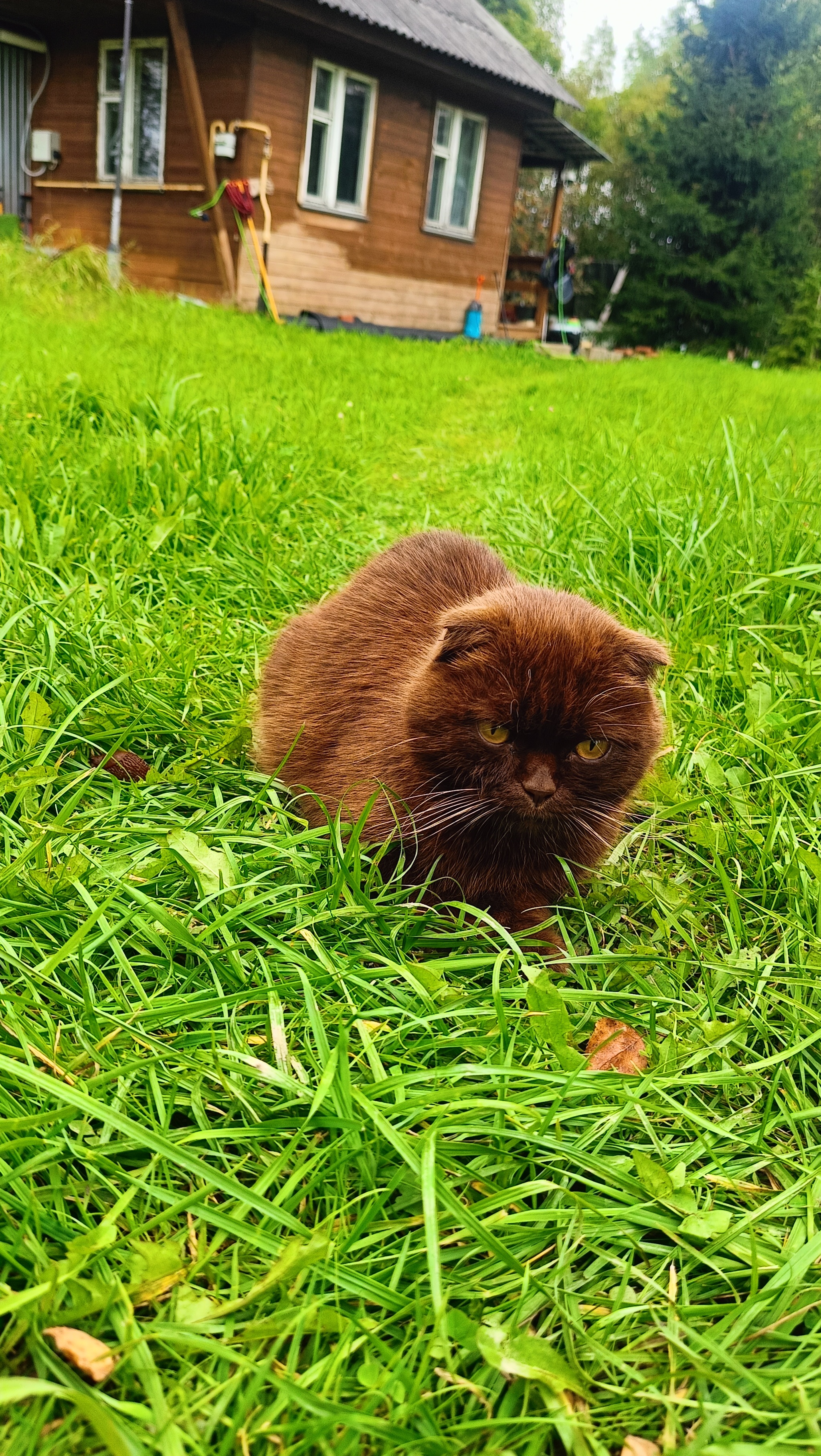 Появился в деревне у меня на участке кот. Таких здесь никогда ни у кого не было. Скорее всего кто-то с дороги выкинул больное животное.